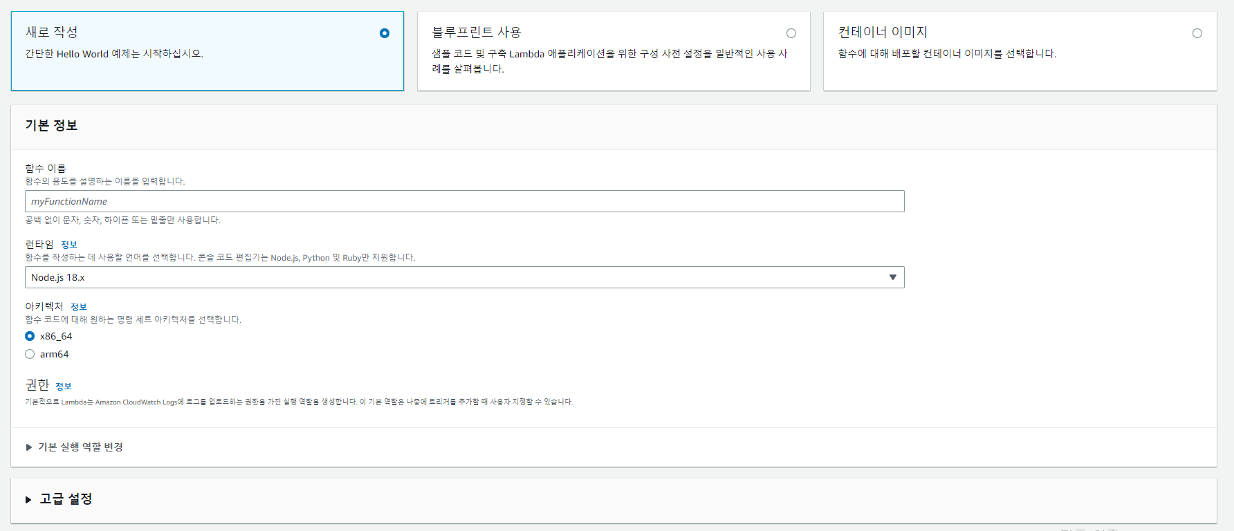 AWS콘솔에서 Lambda를 검색합니다. 그리고 함수 생성을 누릅니다.